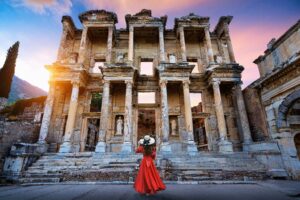 Ancient Whispers In Ephesus, where ancient whispers flow, Marble streets and columns glow. Travelers tread where history’s woven, Time’s embrace, a past unbroken.
