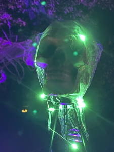 Then the would come across a werewolf hanging in the tree surrounded by glowing green eyeball lights as he bares his teeth as each visitor approaches.
