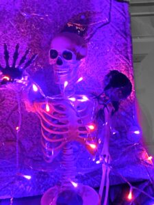 Place some larger skeletons sitting upright and wrap orange or purple strings light around it to attract attention.